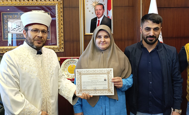 Bingöl İl Müftülüğünde düzenlenen ihtida töreninde İslam dinini seçerek Müslüman olan Polonya uyruklu Alman vatandaşı Honorata Maria, 'Eda' ismini alarak yeni bir hayata adım attı.