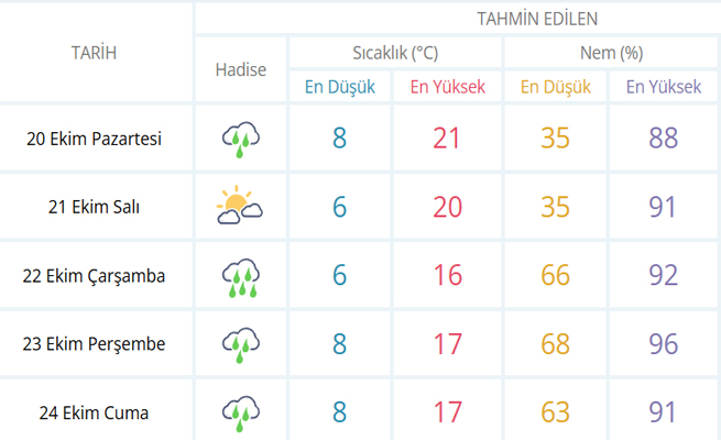 Yüksek kesimlerde kar şeklinde görülmesi beklenen yağışların kent merkezlerinde sağanak olarak görüleceğine dikkat çekilen raporda, yıldırım düşmesine karşı dikkatli olunması istenirken, sel ve su baskınlarına karşı tedbir alınması uyarısına da yer verildi